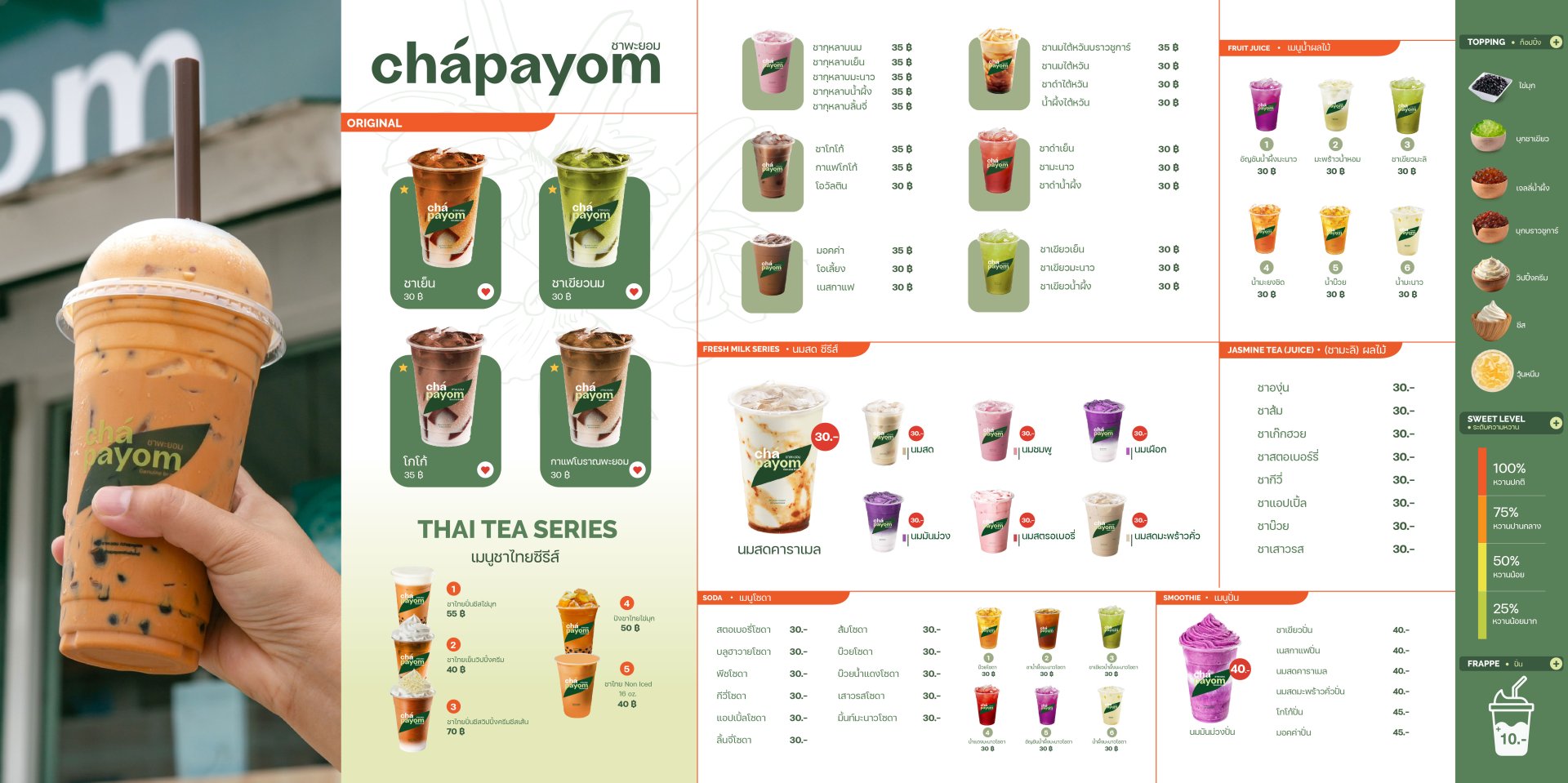 ชาพะยอม เราคือ แฟรนไชส์เครื่องดื่มชาไทย มีจุดเด่นในเรื่องชาที่มีรสชาติหอมเข้มกลมกล่อม อร่อยอย่างลงตัว และมีเอกลักษณ์เฉพาะตัวที่เมื่อลูกค้าชิมก็จะรู้เลยว่านี่คือชาพะยอม ชาพะยอมเป็นแบรนด์ที่เข้าถึงได้ง่ายตามคอนเซ็ปต์ "ใครๆ ก็ดื่มได้" ชาพะยอมจำหน่ายเครื่องดื่มในราคาเริ่มต้นแก้วละ 30 บาท ด้วยราคาที่ไม่สูง ลูกค้าจึงสามารถจับต้องได้ทุกกลุ่ม ทุกวัย ทำให้ลูกค้าติดใจในรสชาติน้ำชาและเลือกชาพะยอมเป็นส่วนหนึ่งของประจำวัน