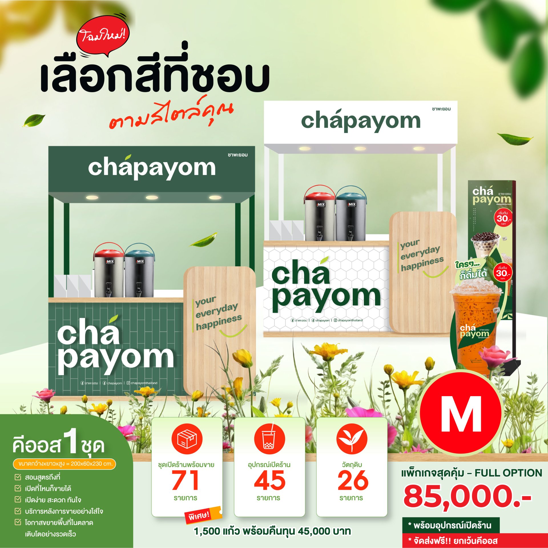 ทางแบรนด์ชาพะยอมทำการจัดส่งชุดเปิดร้านแฟรนไชส์ สูตร พร้อมทั้งอุปกรณ์ต่างๆ ตามแฟรนไชส์ที่เลือก